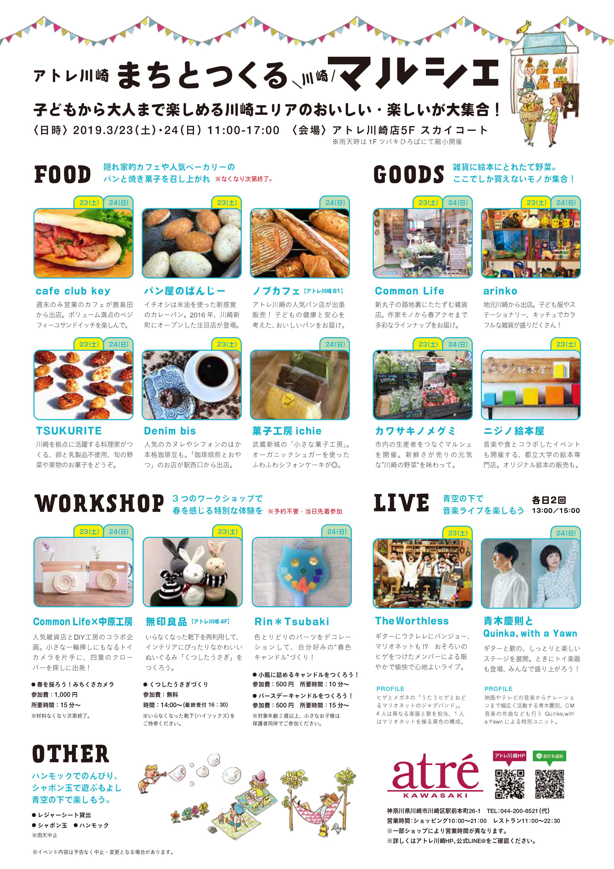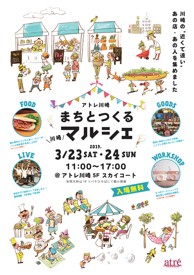 僕の地元でもある川崎市の、JR川崎駅直結の商業施設「アトレ」の屋上”スカイコート”にて、3/23(土)〜24(日)の2日間、マルシェが開催されます。その2日目の昼間、Quinka,with a Yawnと共にフリーライブを行います。お買い物とあわせて、ぜひお気軽にお越しください。