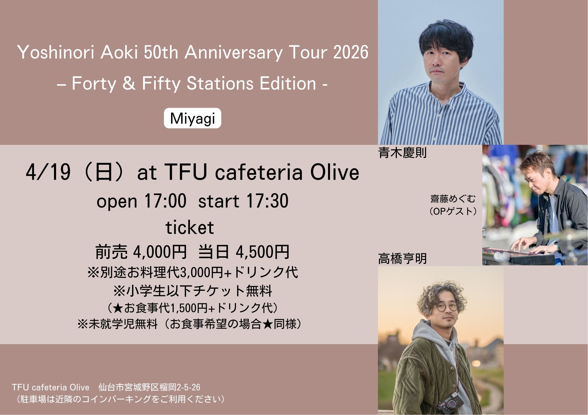 仙台のみ、オープニングゲストとして、シンガーソングライター・齋藤めぐむ さんが参加します。