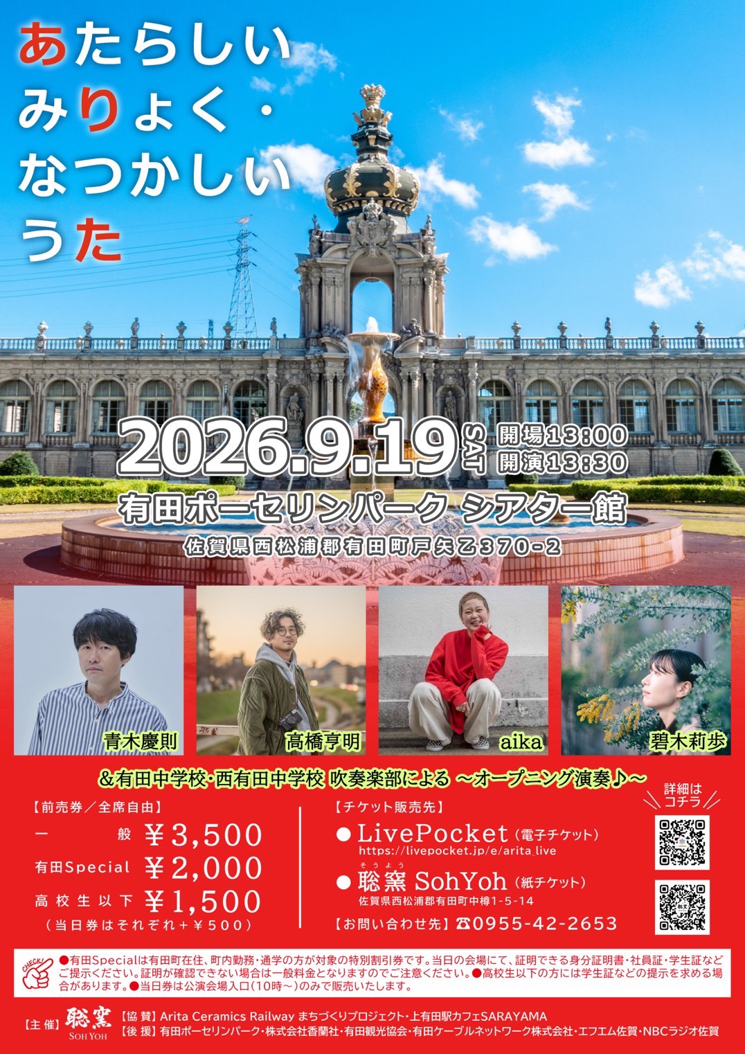 ※有田Specialは有田町在住、町内勤務・通学の方が対象の特別割引券です。当日の会場にて、証明できる身分証明書・社員証・学生証などご提示ください。証明が確認できない場合は一般料金となりますのでご注意ください。