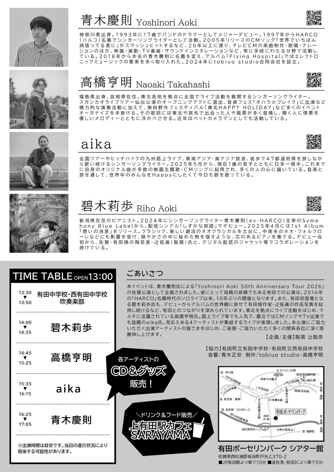 50歳ツアーの一環として、母の故郷・佐賀県有田で久々にホールイベントを開催します。有田での僕のライブはこれが2回目で、有田焼400年にあたる2016年以来10年ぶりとなります。